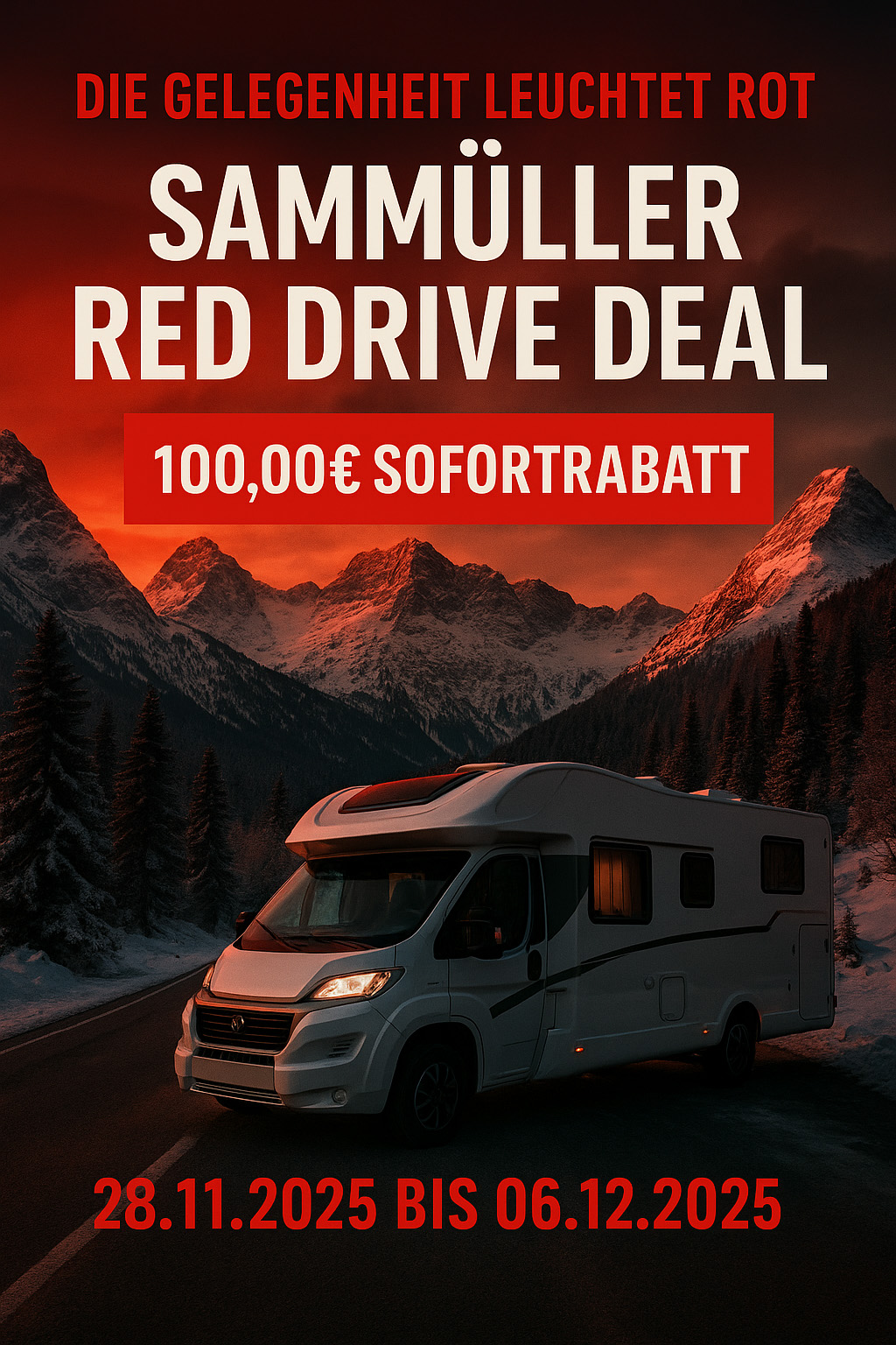 Roter Drive-Deal im Alpenpanorama Veröffentlicht am 28. November 2025 in Wohnmobil mieten in Bamberg, Sparpreise 2026.Volle Auflösung (1024 × 1536) ← Zurück Weiter →
